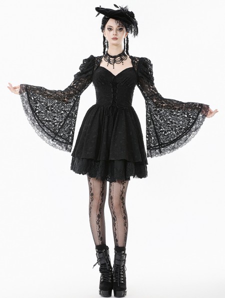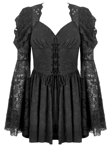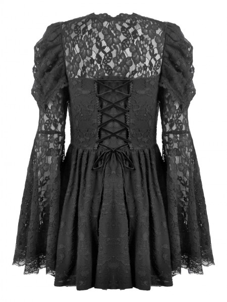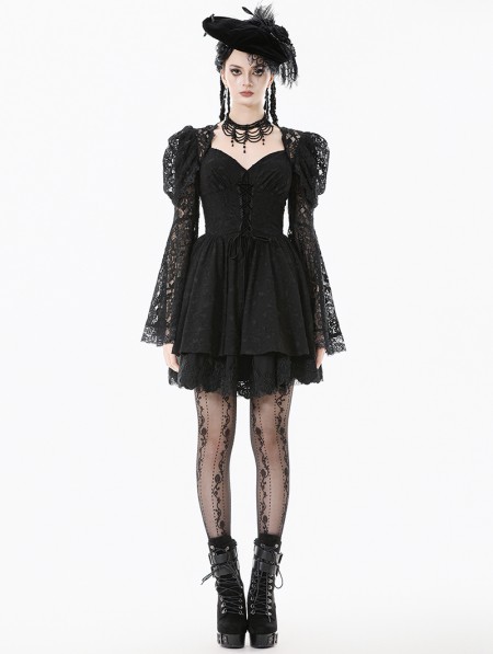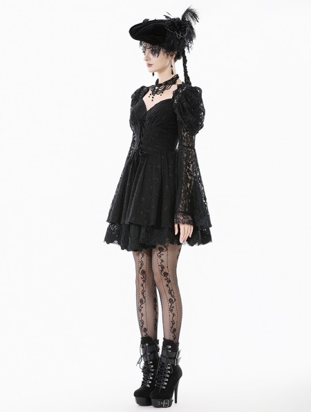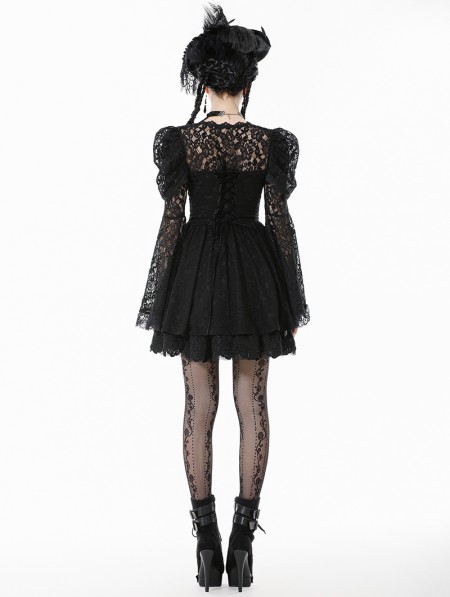 Dark in love Black Gothic Lace Puff Sleeve Princess Short Dress