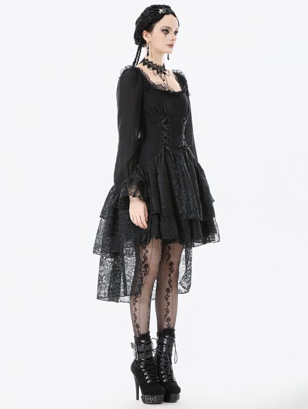 Dark in love Black Romantic Gothic Lace High-Low Tiered Dress