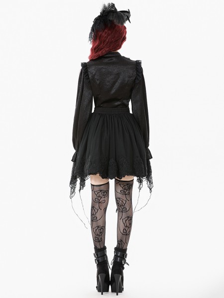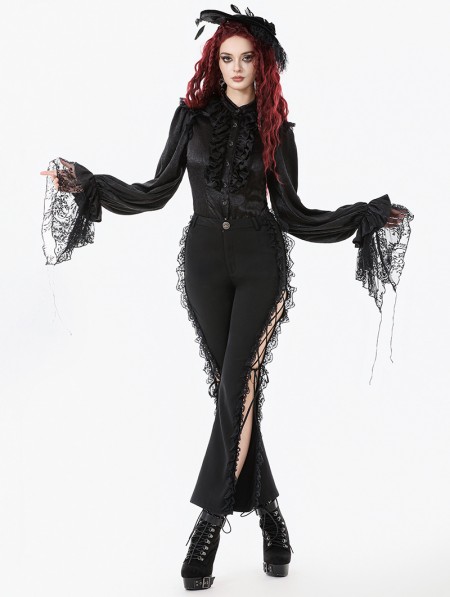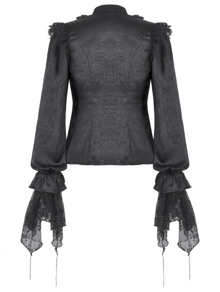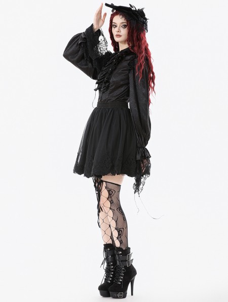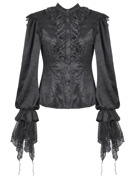 Dark in love Black Ruffle Gothic Lantern Sleeve Blouse for Women