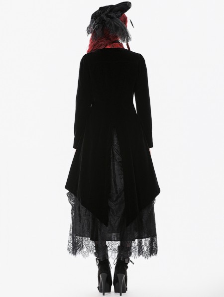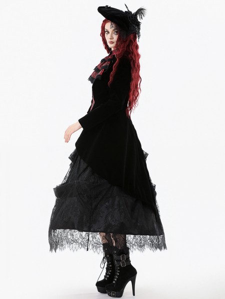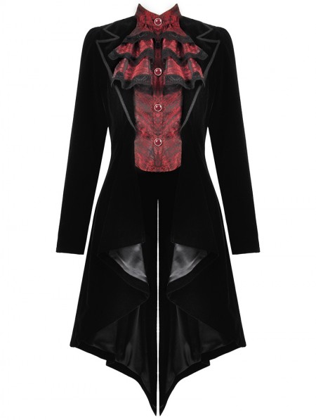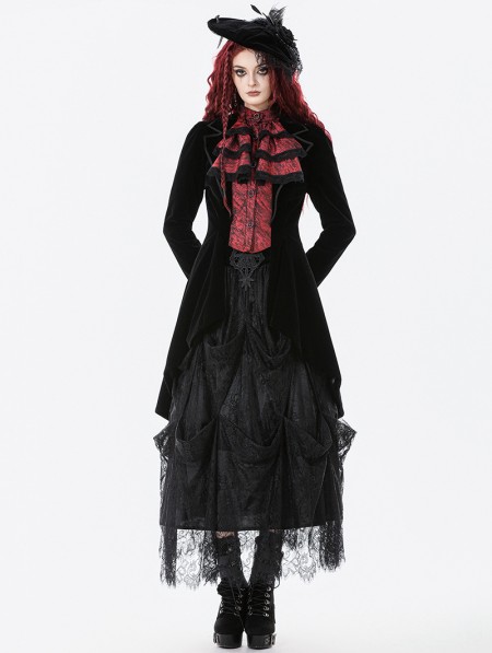 Dark in love Black and Red Retro Gothic Velvet Faux Two-Piece Tailcoat for Women