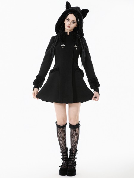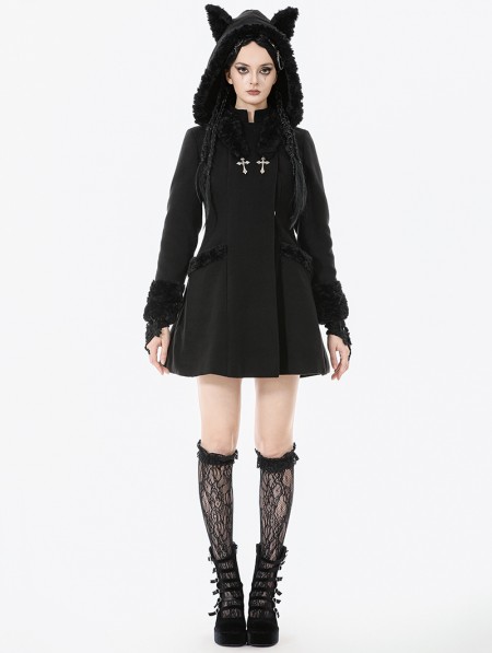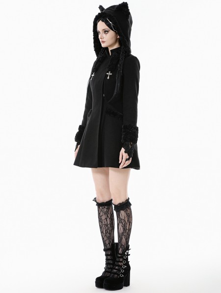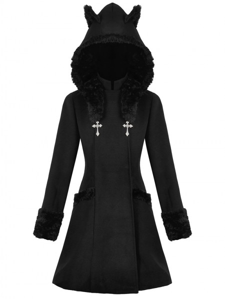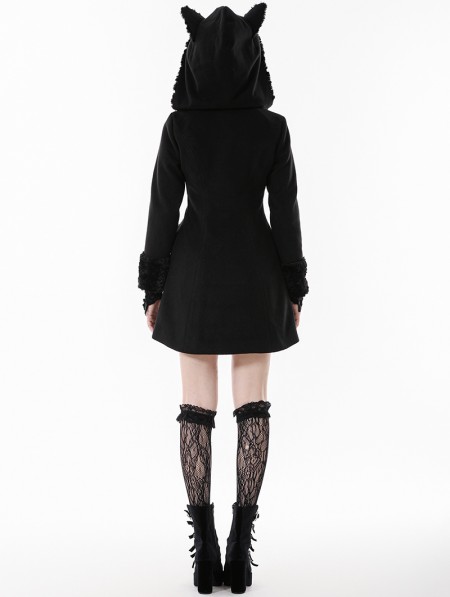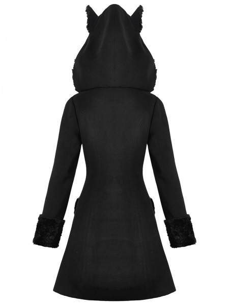 Dark in love Black Gothic Cute Cat Ear Fuzzy Hoodie Coat for Women