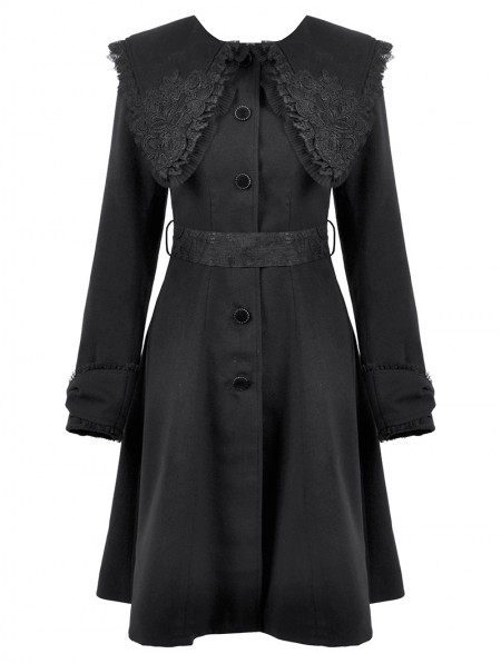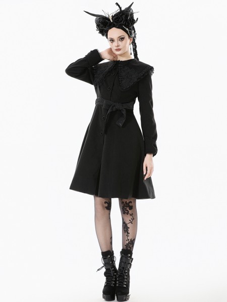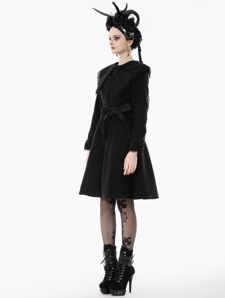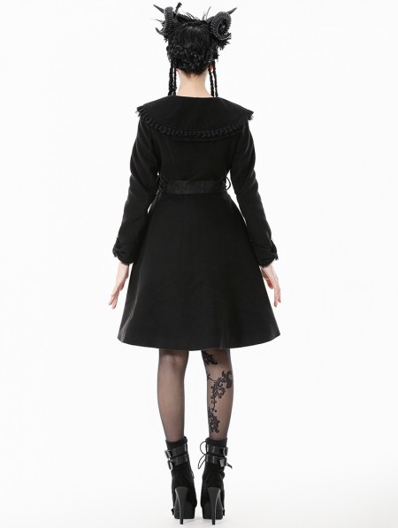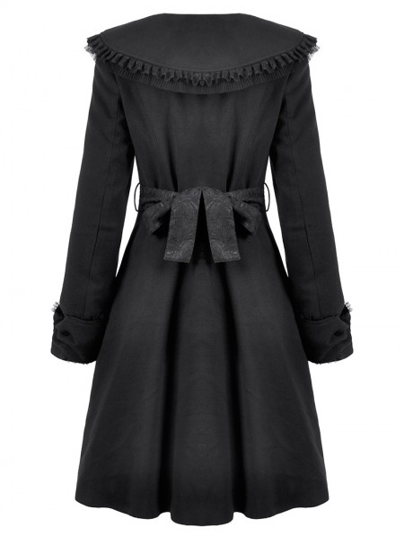 Dark in love Black Gothic Bowknot Embroidered Warm Coat for Women