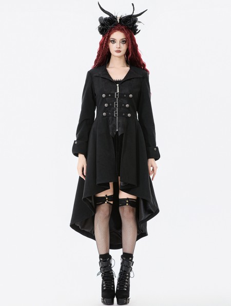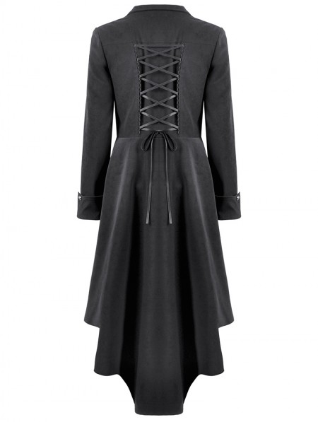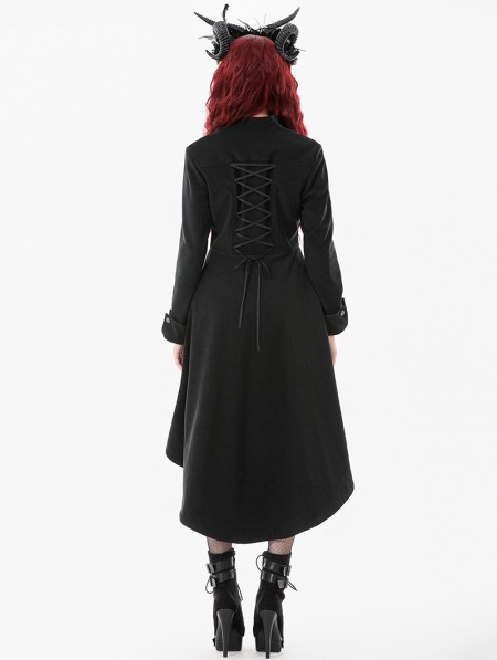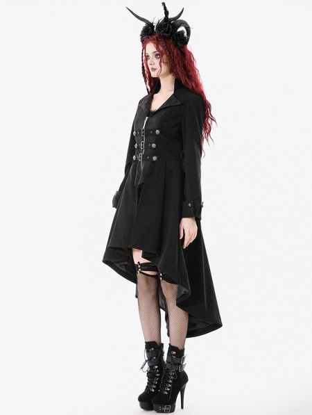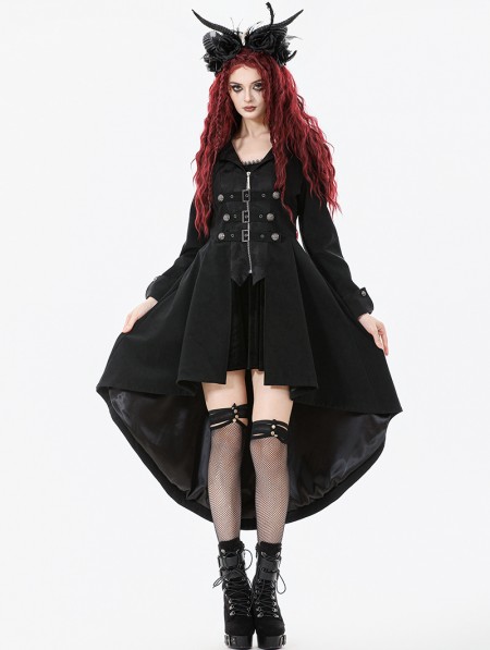 Dark in love Black Gothic PU Leather Irregular Trench Coat for Women