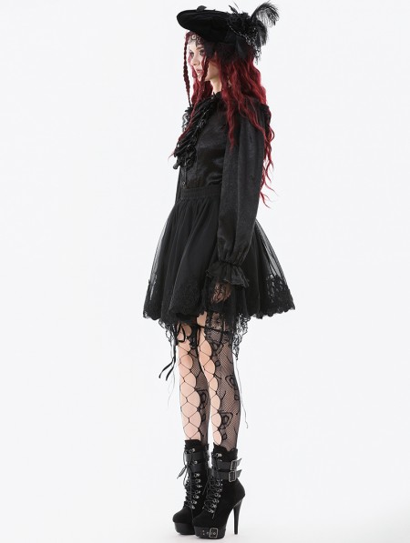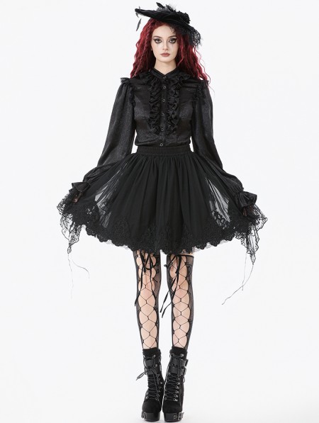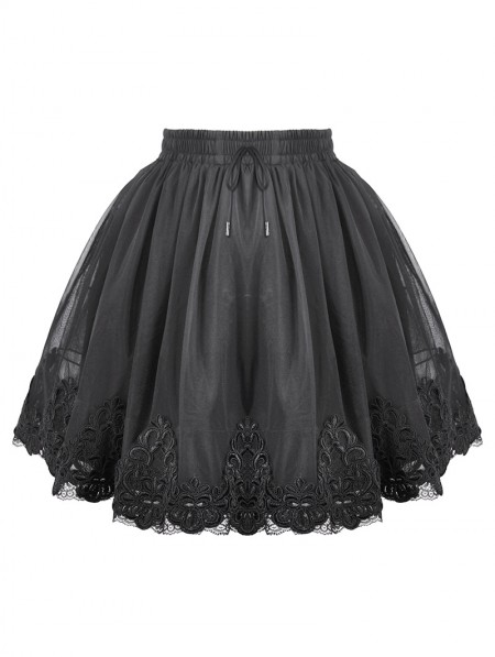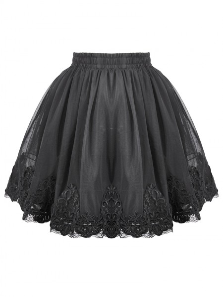 Dark in love Black Gothic Lace Embroidered Mesh Petticoat Skirt