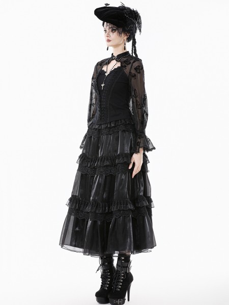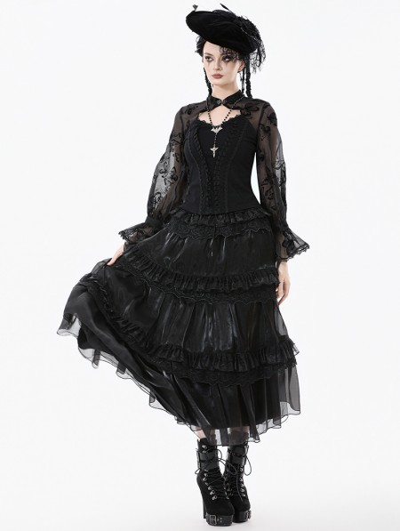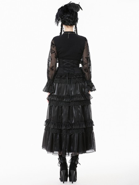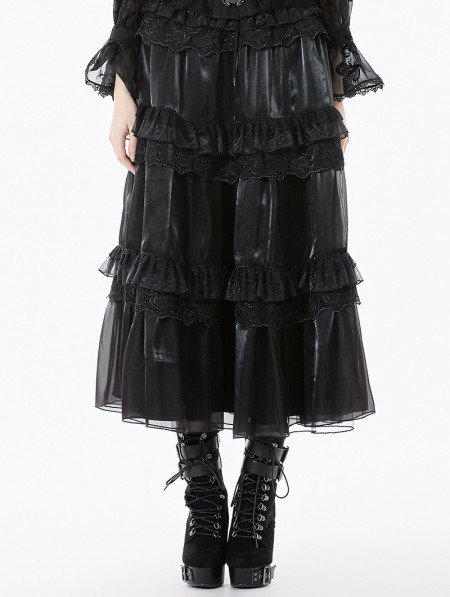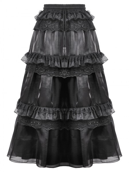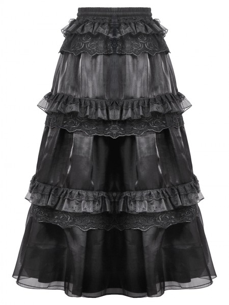 Dark in love Black Gothic Lace Embroidered Layered Maxi Petticoat Skirt