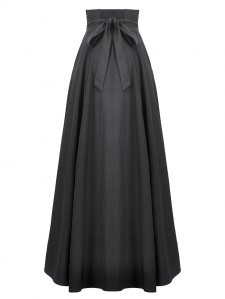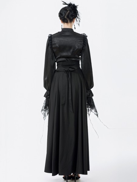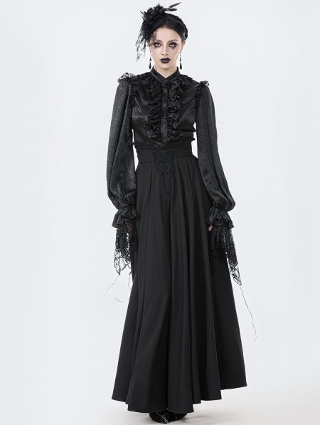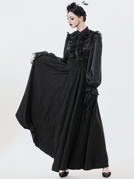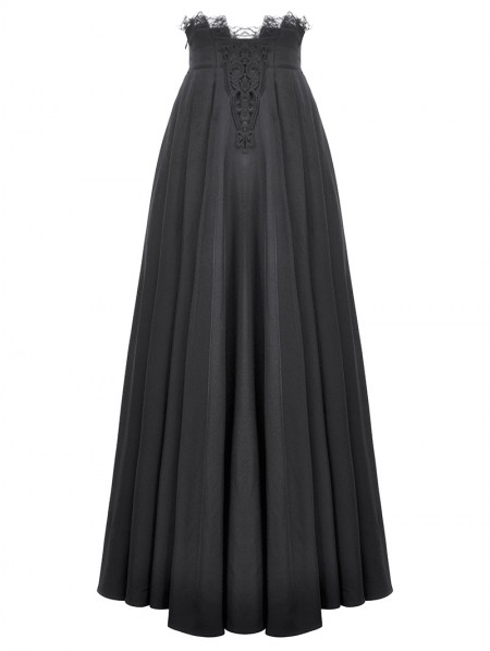 Dark in love Black Vintage Gothic Lace Applique Pleated Maxi Skirt