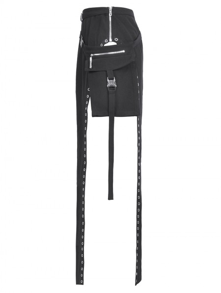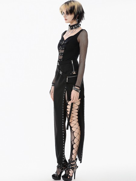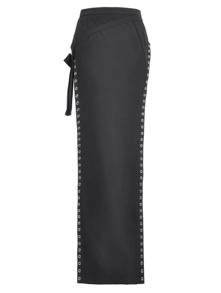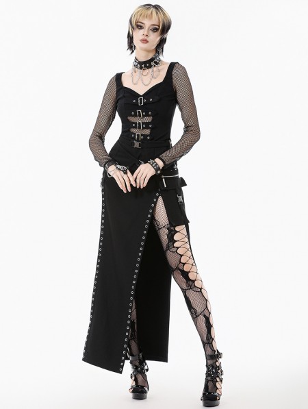 Dark in love Black Sexy Gothic Punk Buckle Strap High-Slit Long Skirt