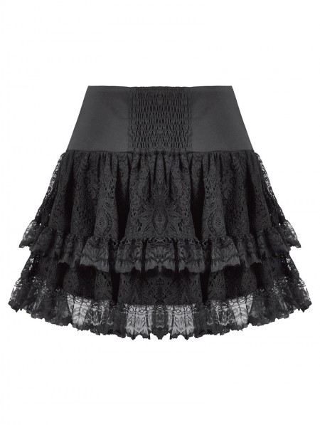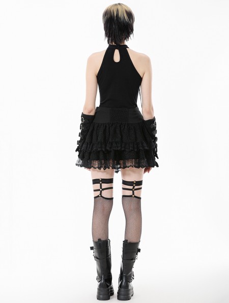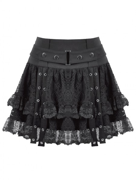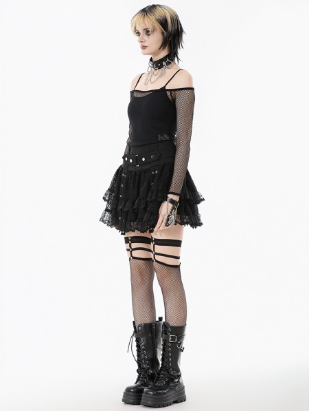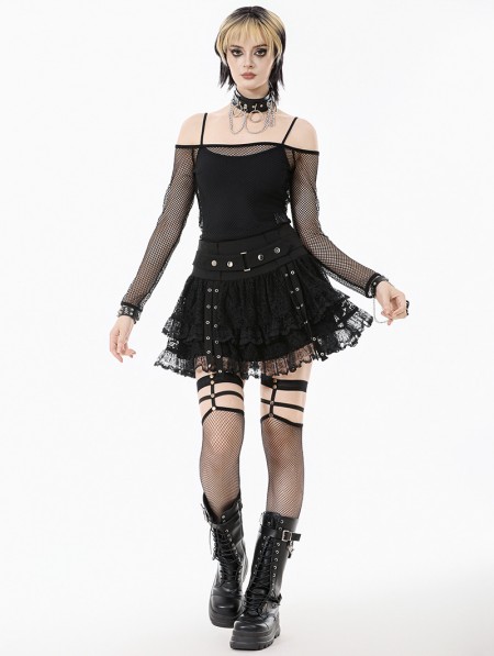 Dark in love Black Gothic Punk Eyelet Strap Lace Mini Skirt