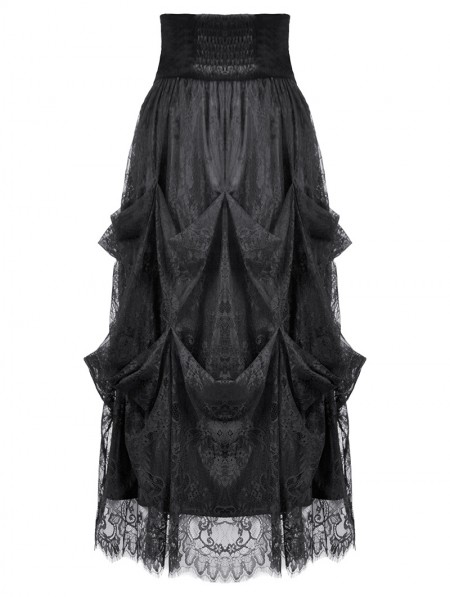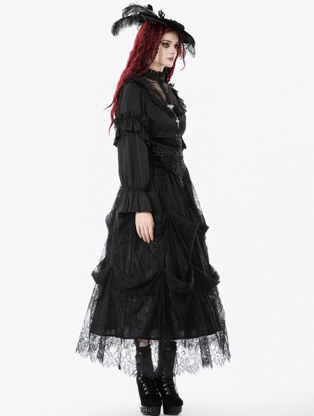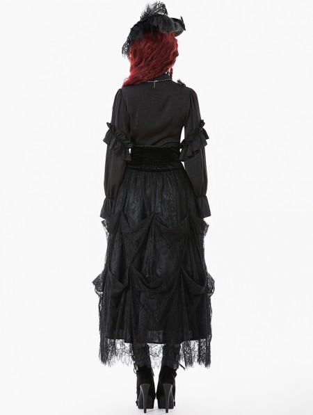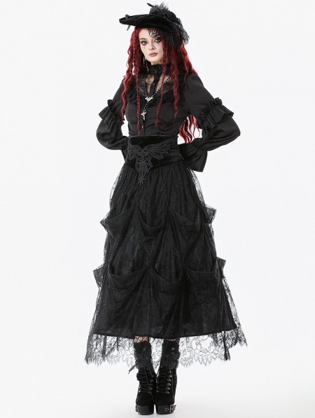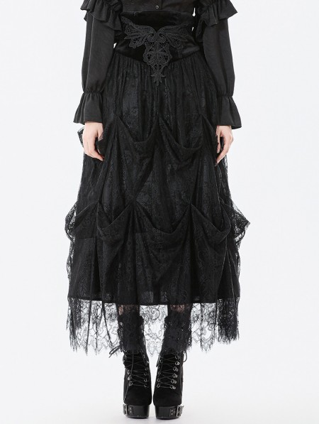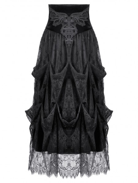 Dark in love Black Vintage Gothic Embroidered Layered High-Waist Long Skirt