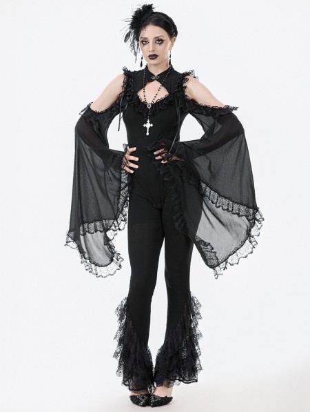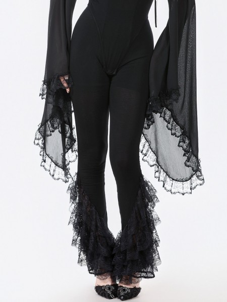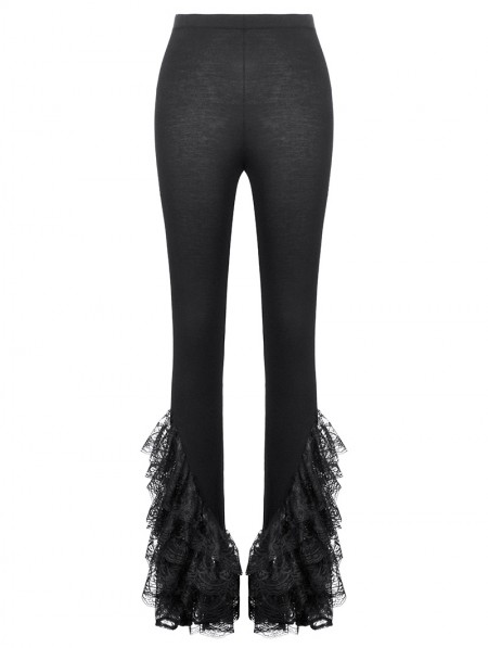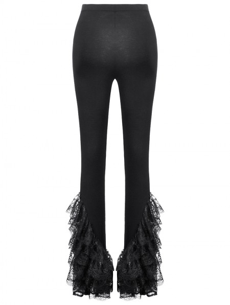 Dark in love Black Gothic Multi-Layer Lace Trim Flared Leggings for Women