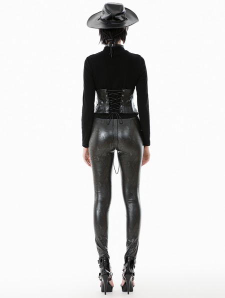 Dark in love Black Gothic Snakeskin Cut-Out Leggings for Women