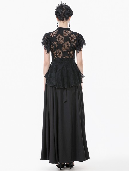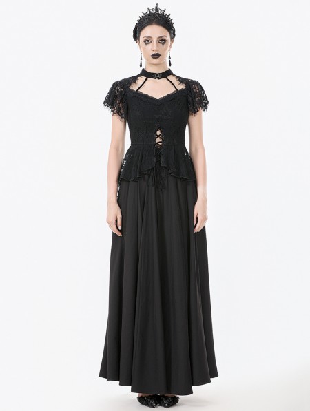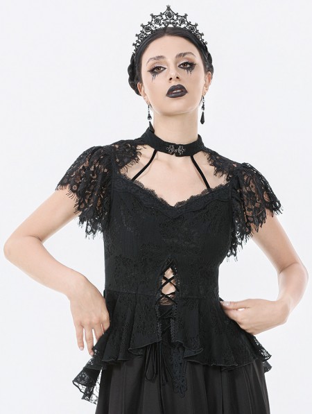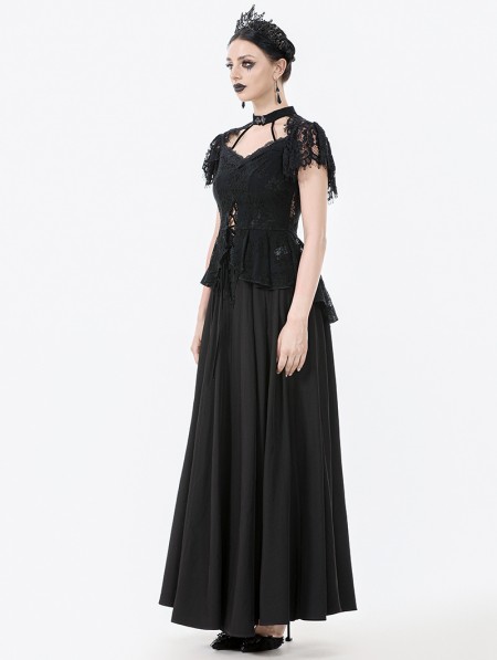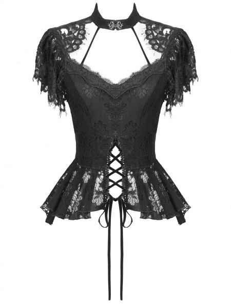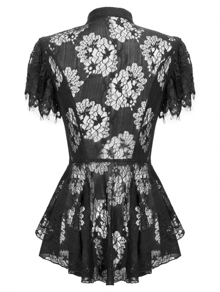 Dark in love Black Gothic Hollow Out Floral Lace Top for Women