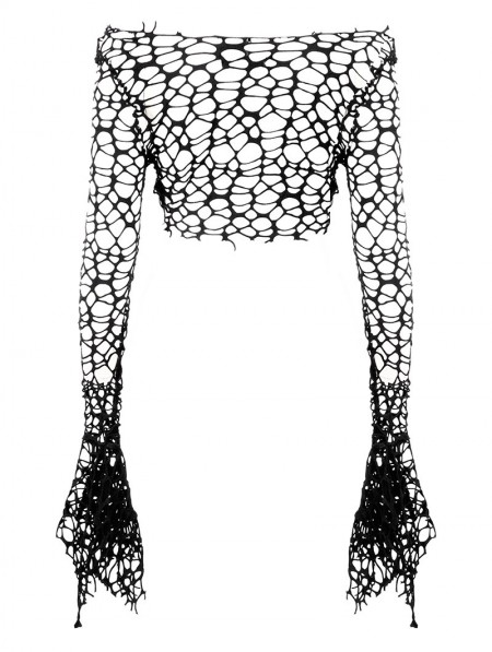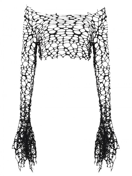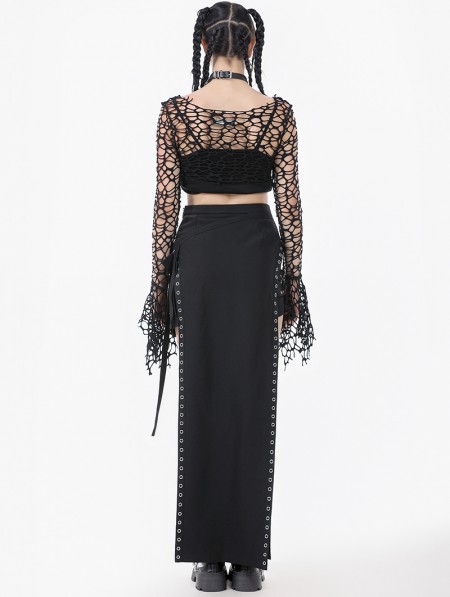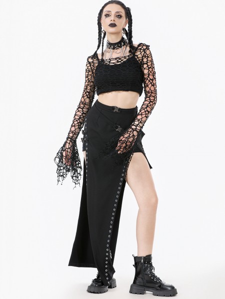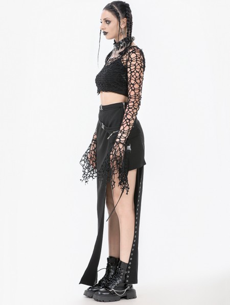 Dark in love Black Gothic Punk Irregular Distressed Crop Top for Women