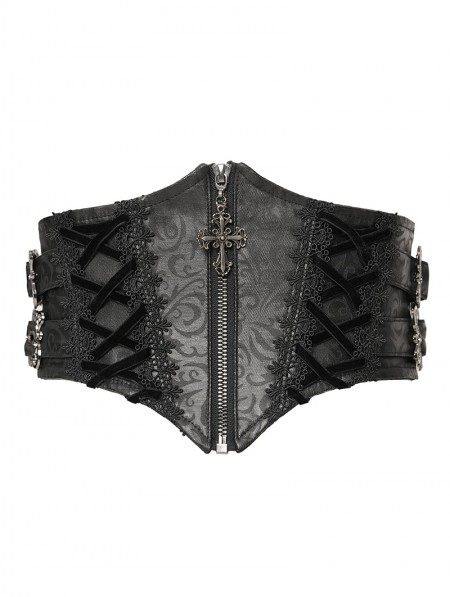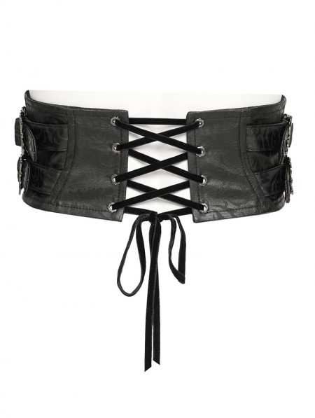 Eva Lady Black Gothic Buckled Pattern Leather Girdle