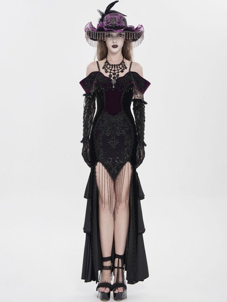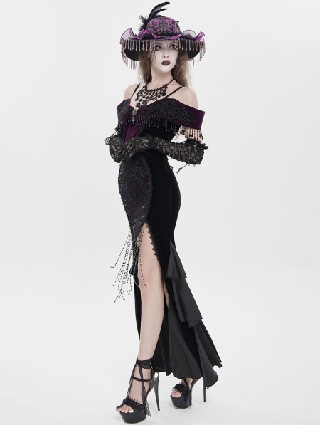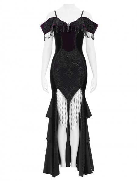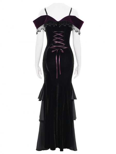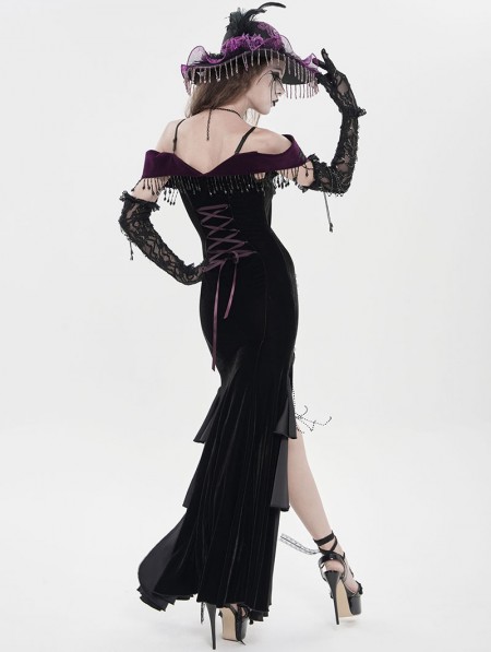 Eva Lady Black and Purple Gothic Sexy Off-the-Shoulder Velvet Slit Fishtail Dress