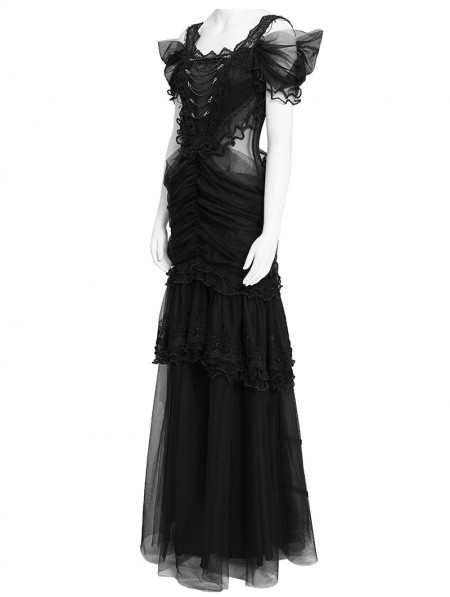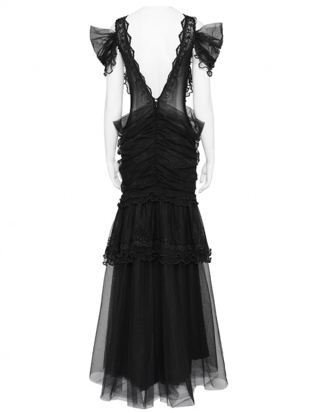 Eva Lady Black Gothic Layered Mesh Mermaid Low Back Maxi Dress