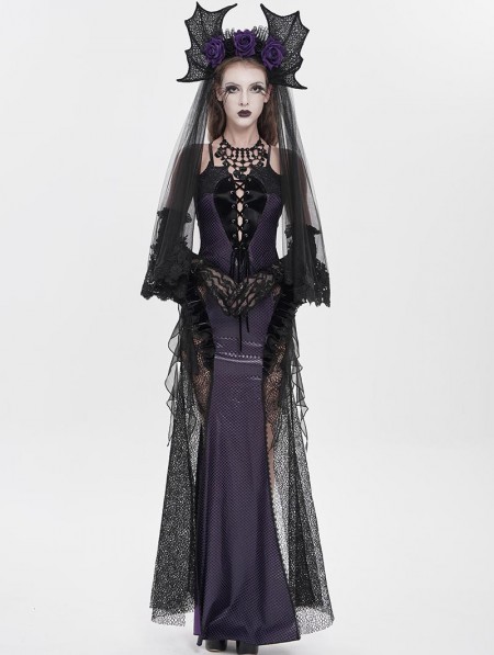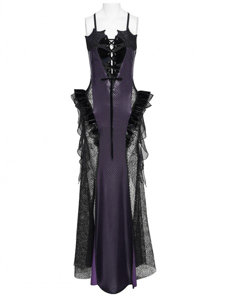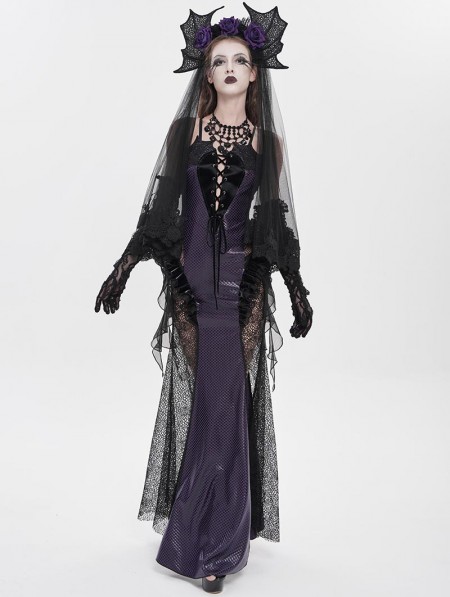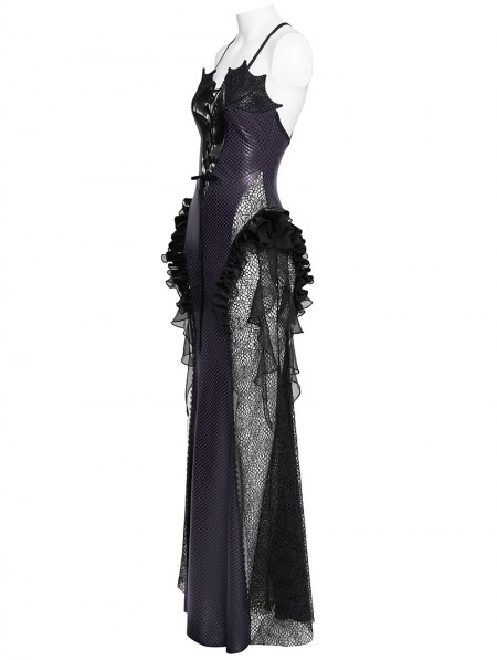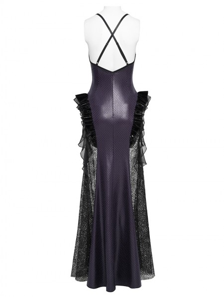 Eva Lady Black and Purple Gothic Leather Mesh Patchwork Fishtail Party Dress
