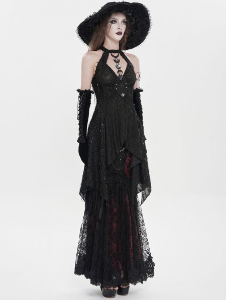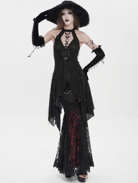 Eva Lady Black Gothic Cutout Halter Sleeveless Vest Top for Women