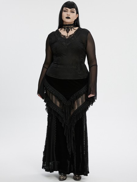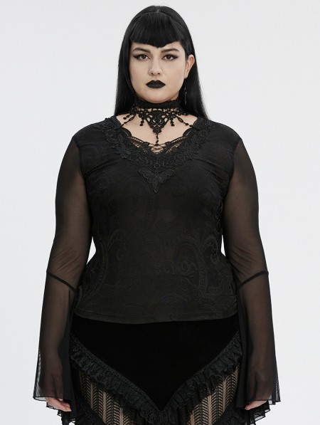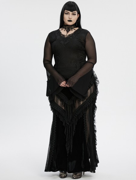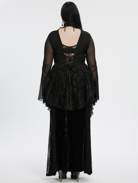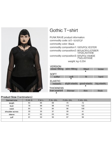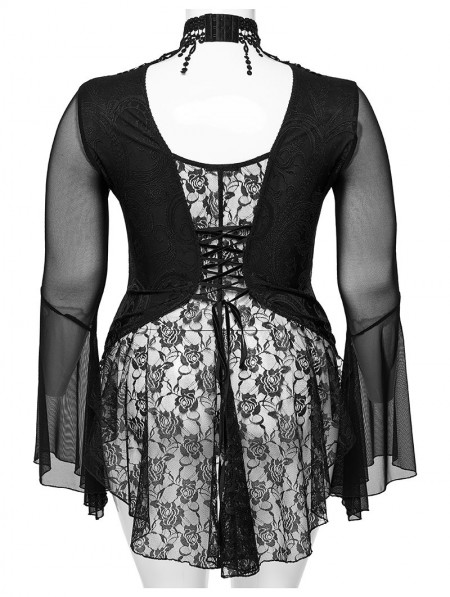 Punk Rave Black Sexy Gothic Irregular Flared Mesh Sleeve Plus Size Shirt for Women