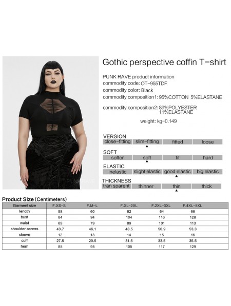 Punk Rave Black Gothic Perspective Coffin Short Sleeve Plus Size T-Shirt for Women