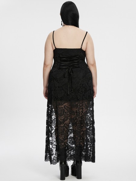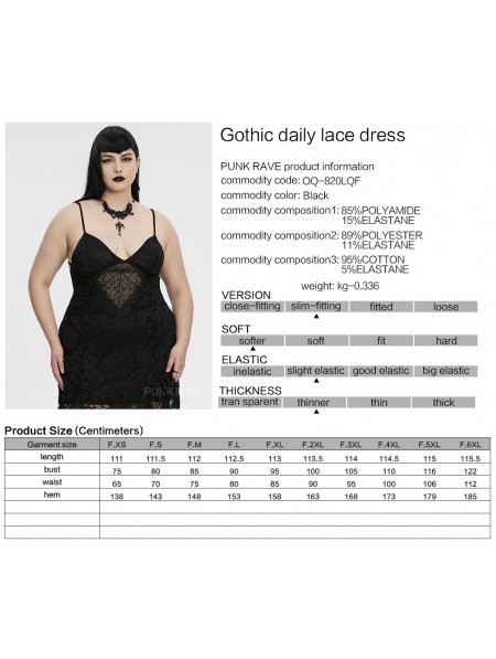Punk Rave Black Sexy Gothic Lace Deep V-Neck High Slit Plus Size Long Dress