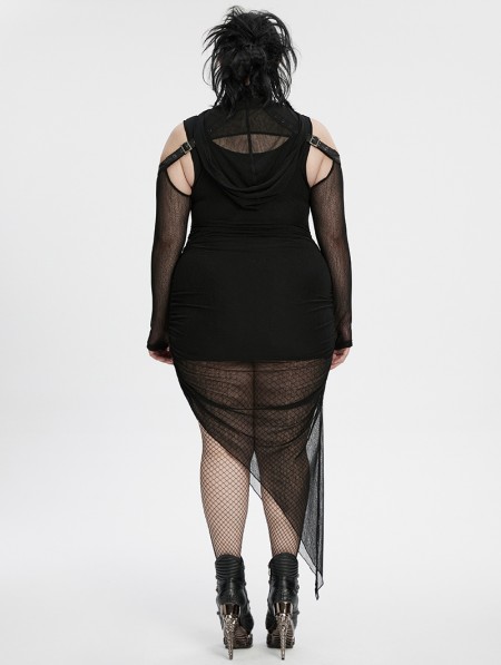 Punk Rave Black Gothic Hooded Irregular Mesh Two-Piece Plus Size Dress