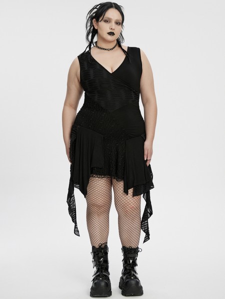 Punk Rave Black Gothic Sleeveless Irregular Hem Plus Size Dress