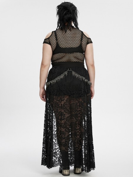 Punk Rave Black Gothic Punk Tie-Dyed Mesh Short Sleeve Plus Size T-Shirt for Women