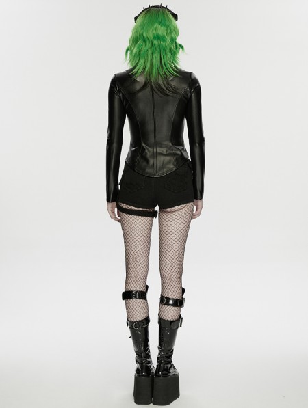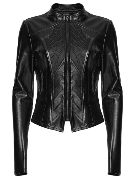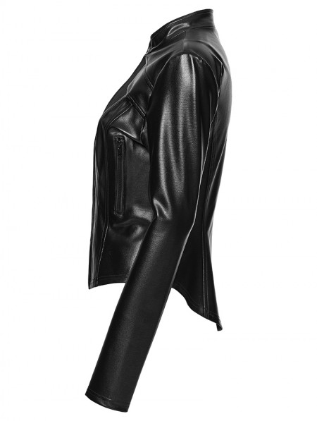 Punk Rave Black Gothic Cyberpunk Slim Fit PU Leather Jacket for Women