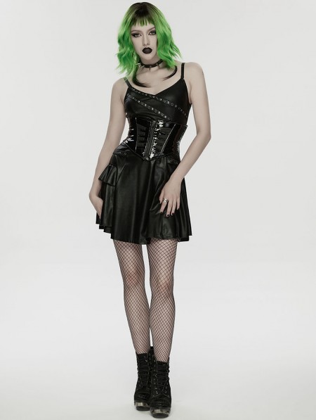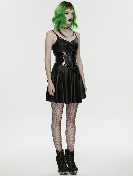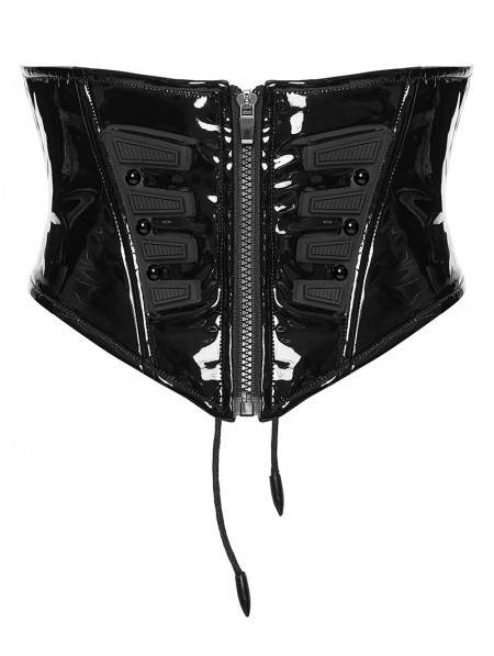 Punk Rave Black Gothic Cyberpunk Gloss Patent Leather Corset Waistband