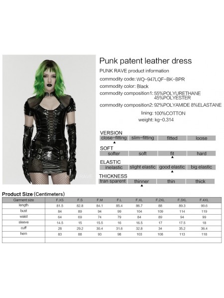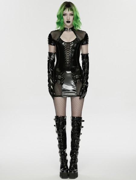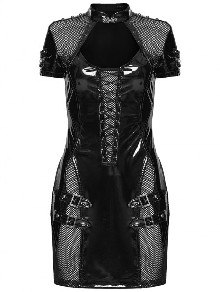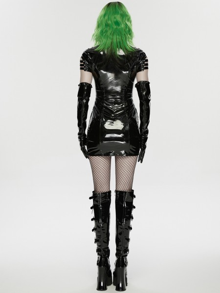 Punk Rave Black Gothic Punk Sexy Gloss Patent Leather Short Dress