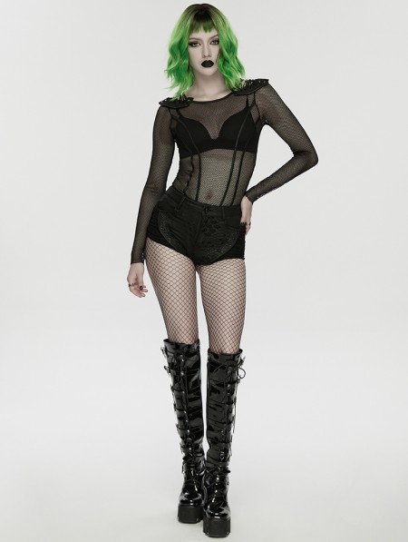 Punk Rave Black Gothic Punk Patterned Low Waist Shorts for Women