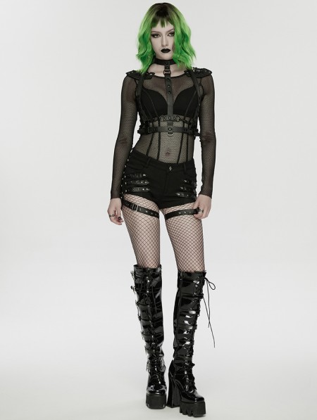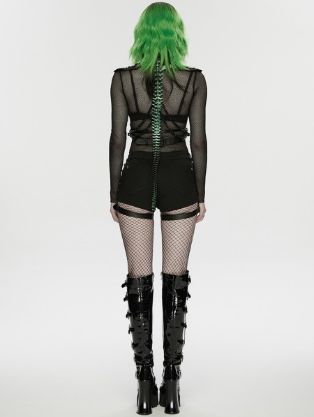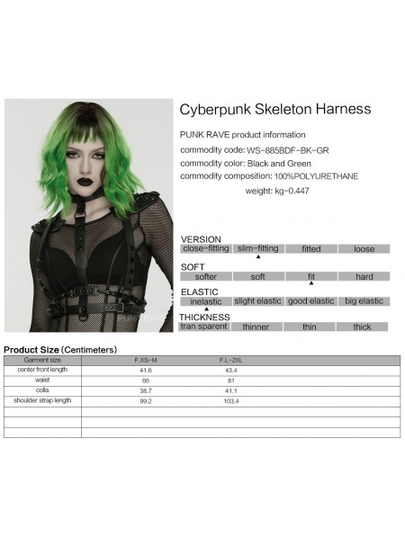 Punk Rave Black and Green Cyberpunk Gothic Skeleton Chain Harness