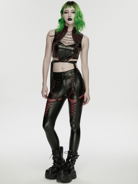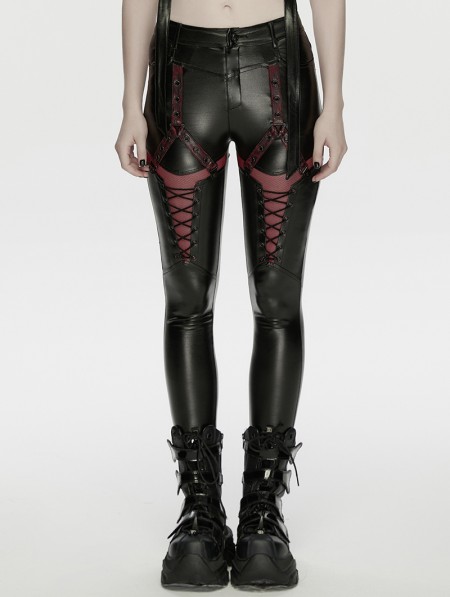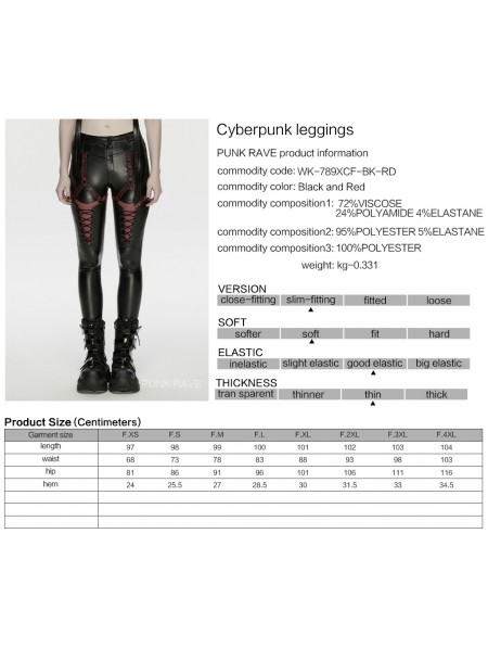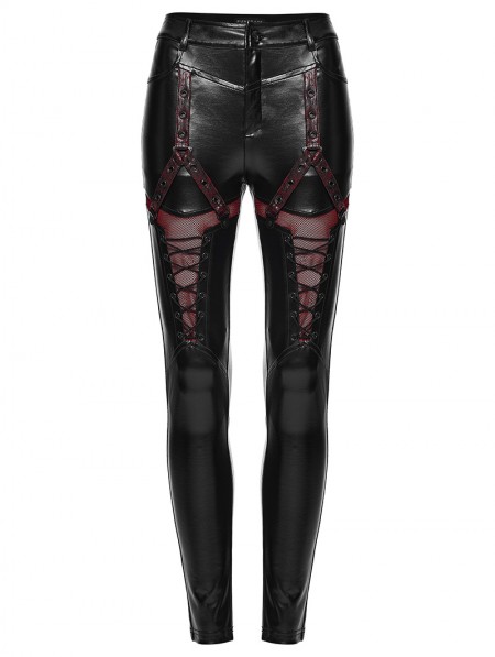 Punk Rave Black and Red Gothic Cyberpunk Mesh Panel Leather Leggings for Women