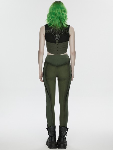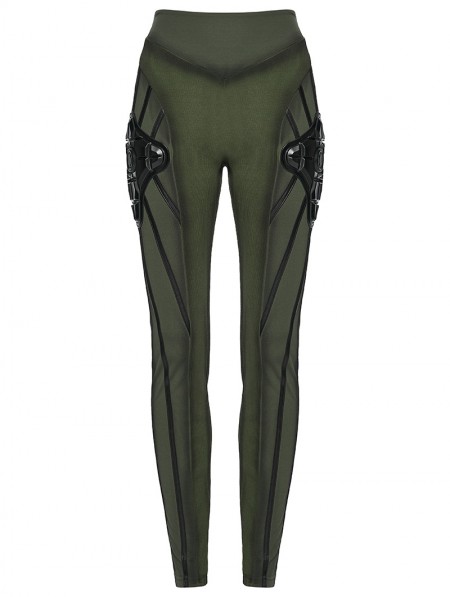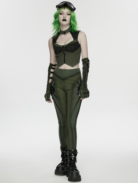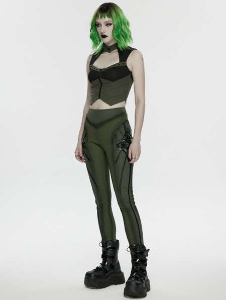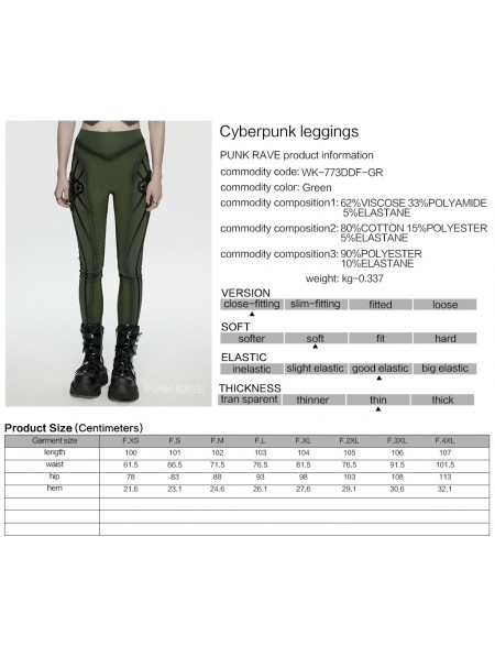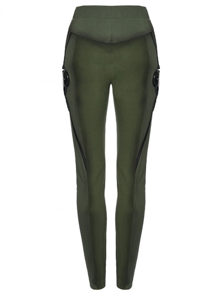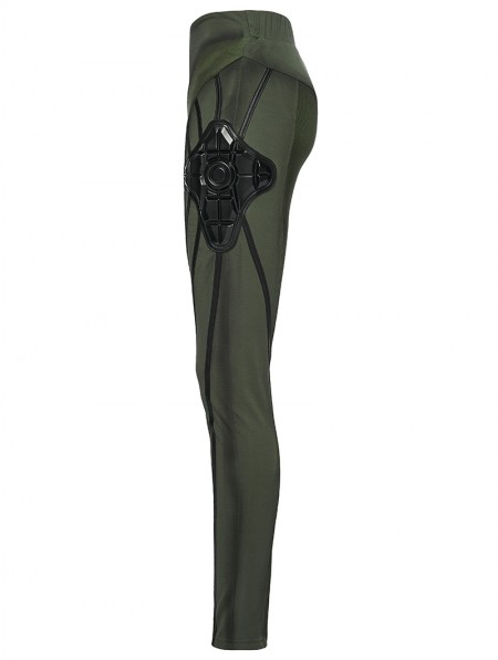 Punk Rave Black and Green Gothic Cyberpunk Leggings for Women