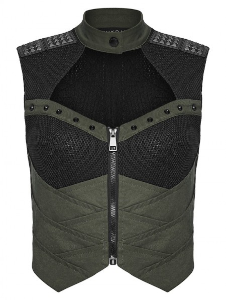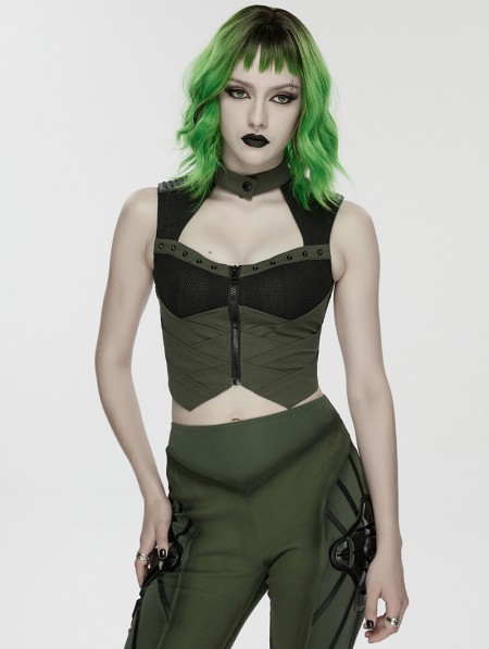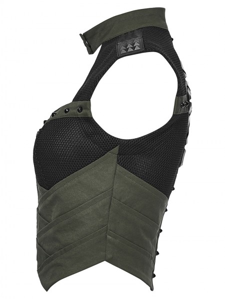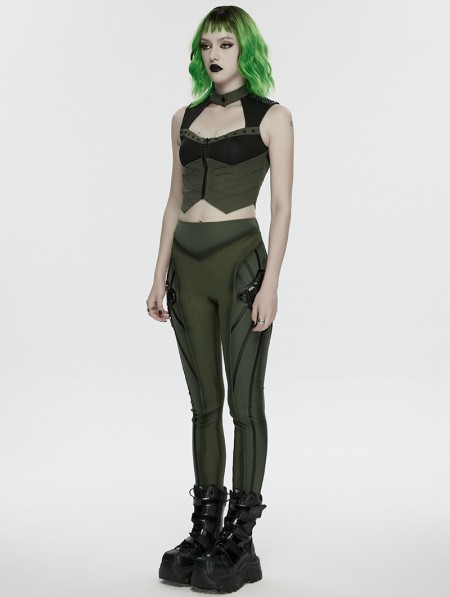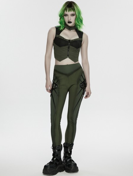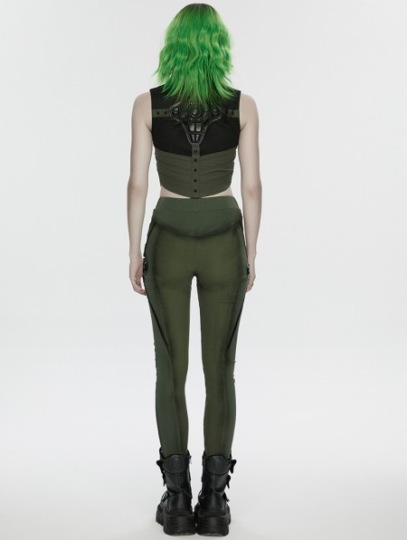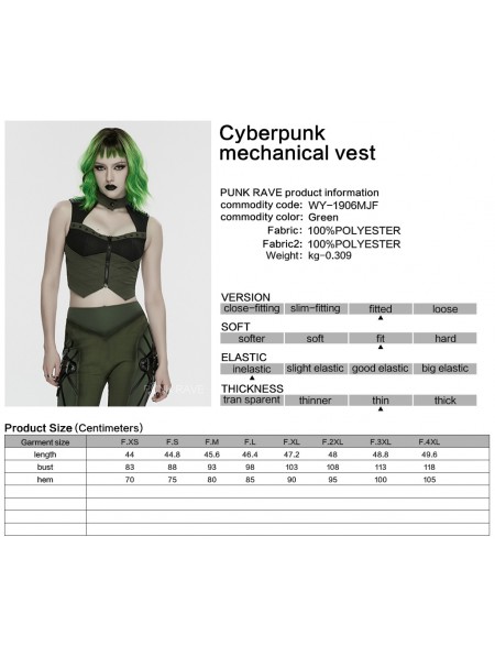 Punk Rave Black and Green Gothic Cyberpunk Mechanical Vest Top for Women