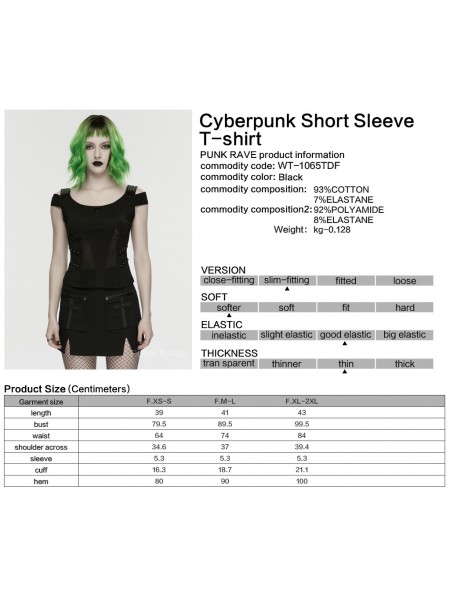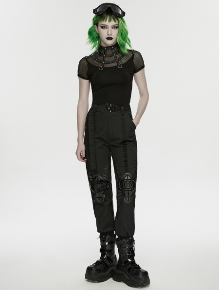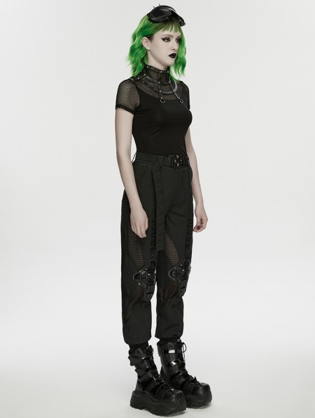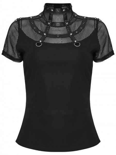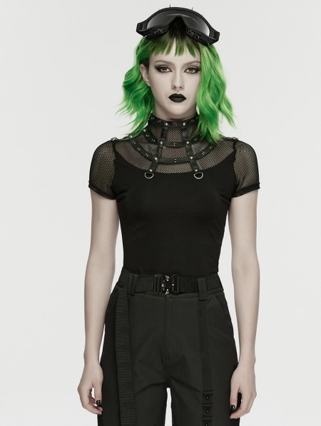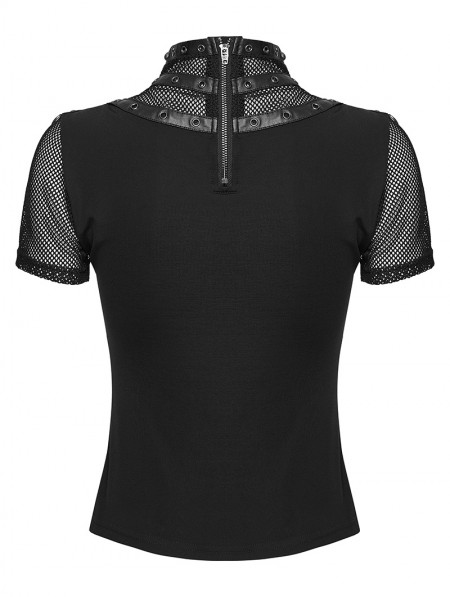 Punk Rave Black Gothic Punk Mesh Spliced Stand Up Collar T-Shirt for Women