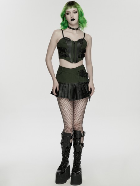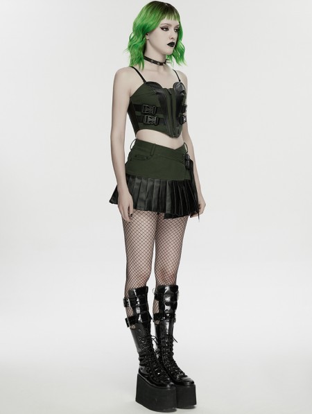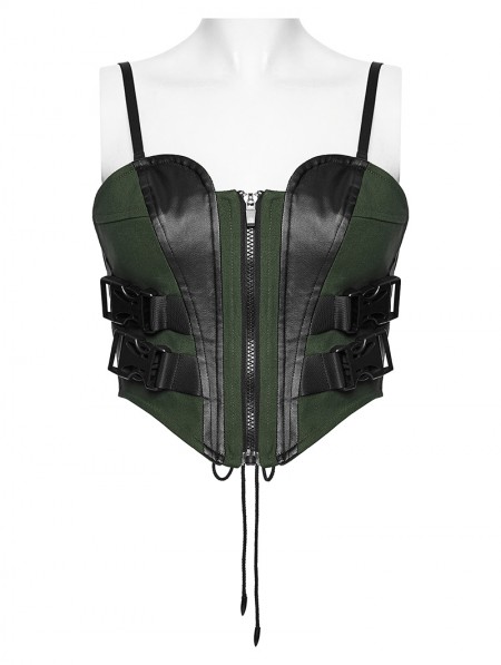 Punk Rave Black and Green Gothic Cyberpunk Corset Top for Women