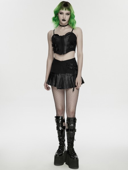 Punk Rave Black Gothic Cyberpunk Asymmetrical One-Piece Pleated Short Skirt