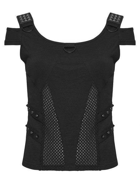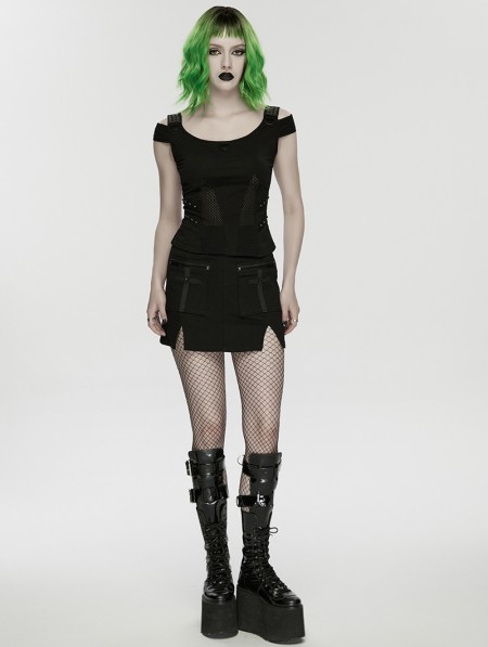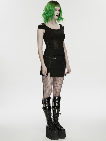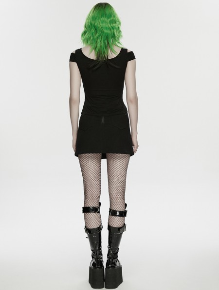 Punk Rave Black Gothic Cyberpunk Short Sleeve T-Shirt for Women