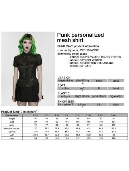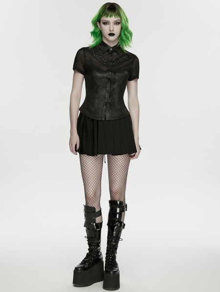 Punk Rave Black Gothic Punk Personality Mesh Spliced Short Sleeve Shirt for Women