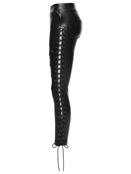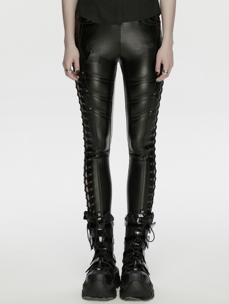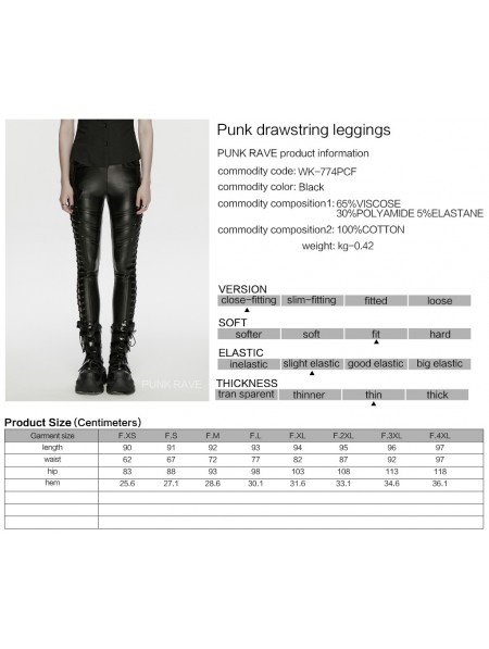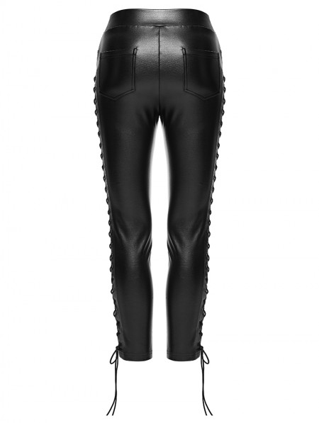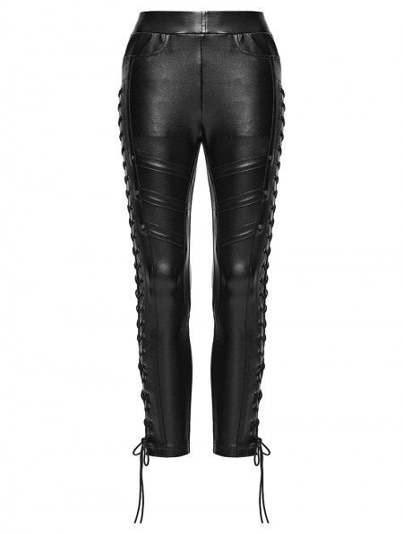 Punk Rave Black Gothic Punk Drawstring Leggings for Women