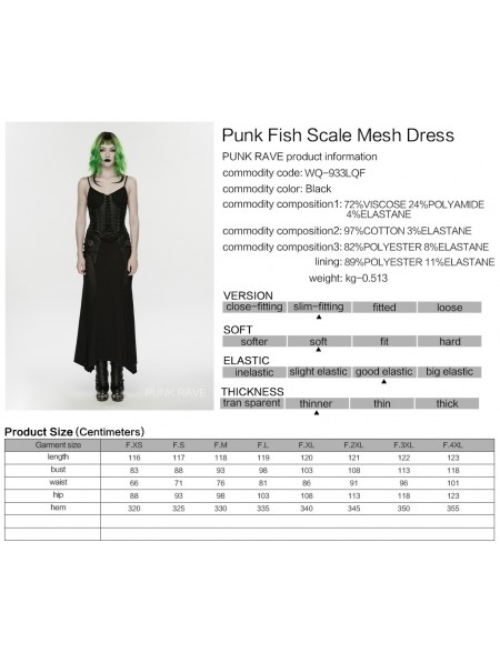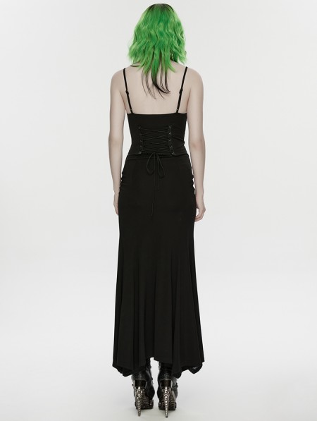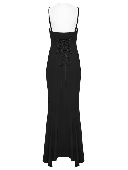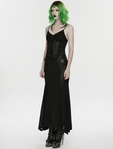 Punk Rave Black Gothic Punk Mesh Slip Fishtail Maxi Dress