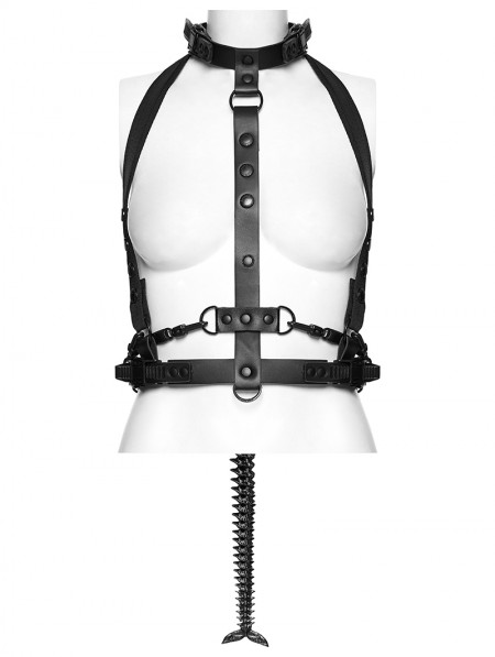 Punk Rave Black Cyberpunk Gothic Skeleton Chain Harness