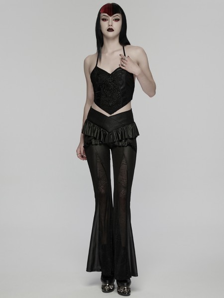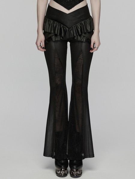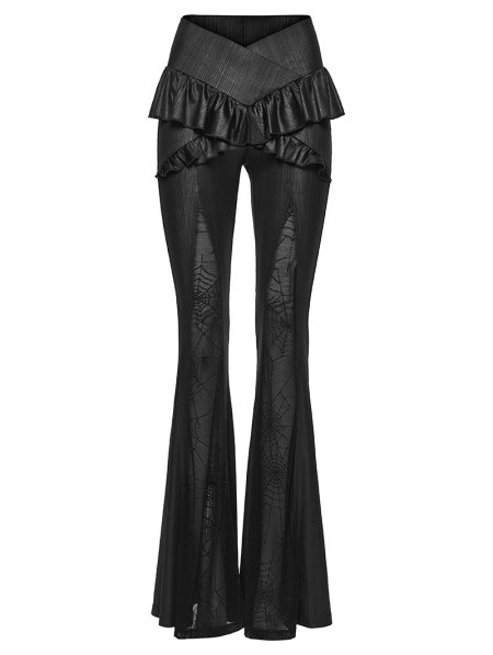 Punk Rave Black Gothic Ruffle Trim Flared Pants for Women