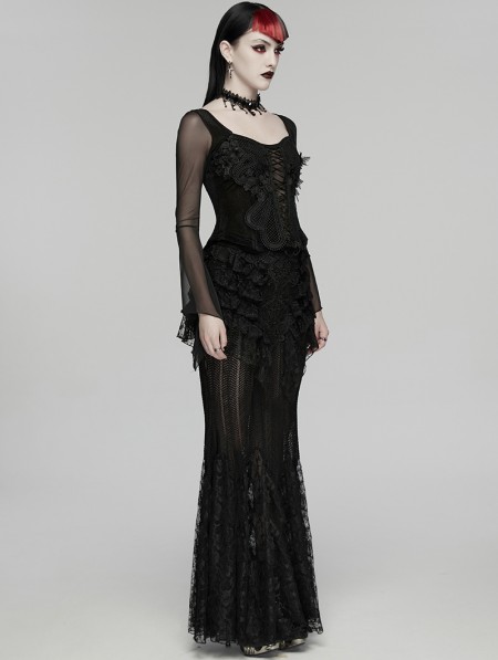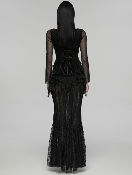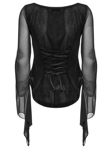 Punk Rave Black Gothic Embroidery Mesh Velvet Shirt for Women