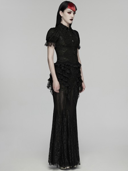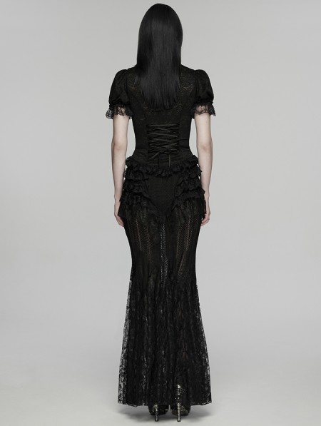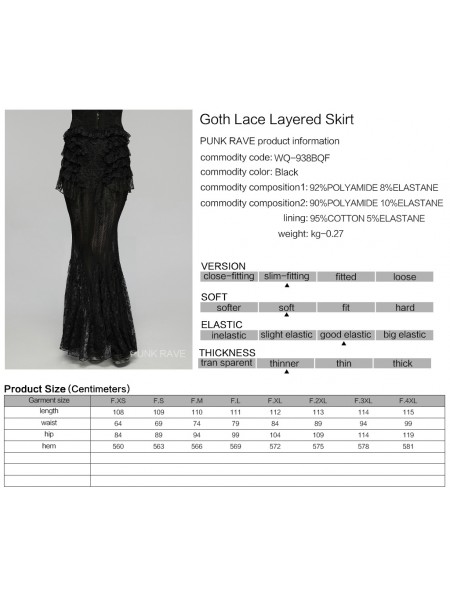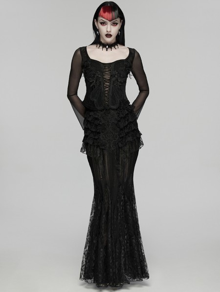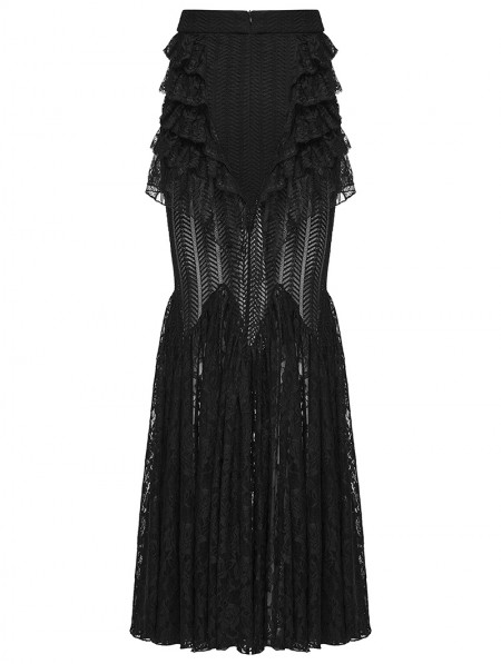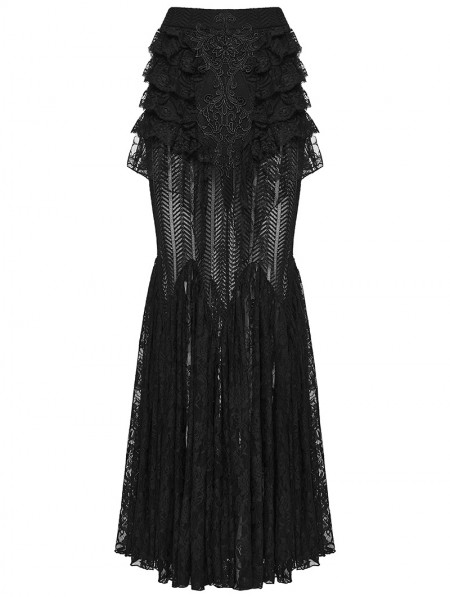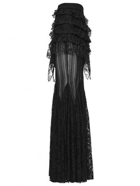 Punk Rave Black Gothic Rose Lace Layered Fishtail Skirt