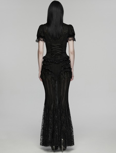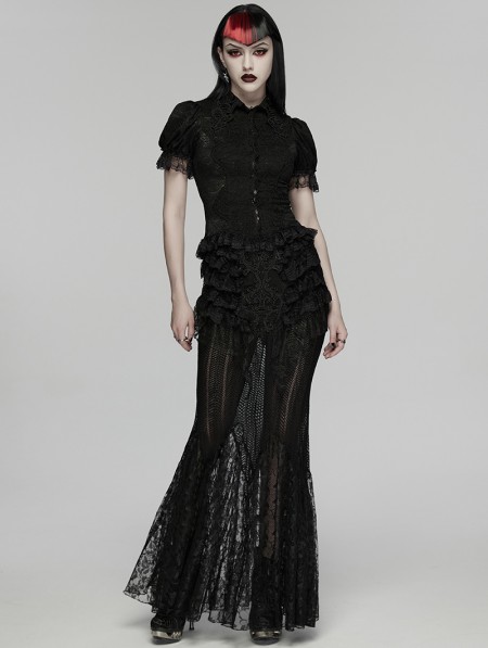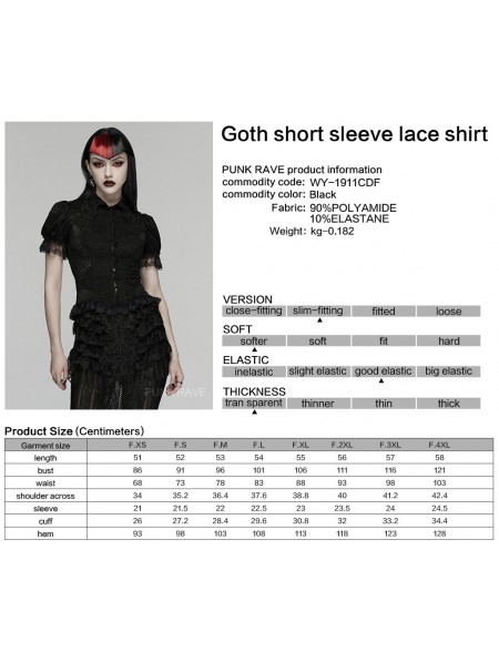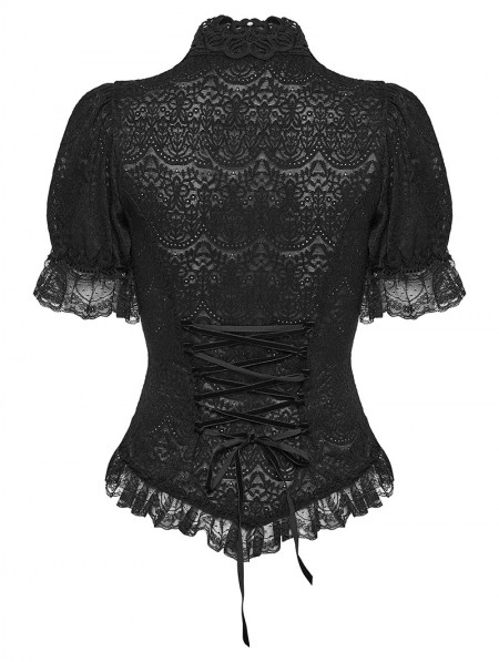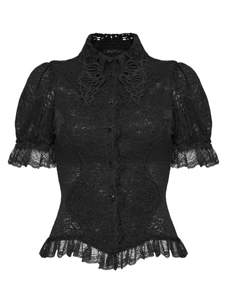 Punk Rave Black Retro Gothic Short Sleeve Lace Shirt for Women