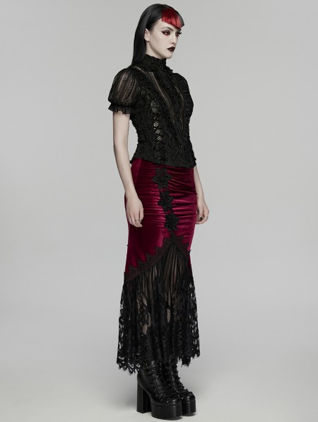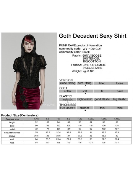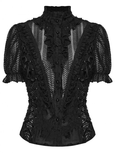 Punk Rave Black Gothic Decadent Sexy Short Puff Sleeve Shirt for Women