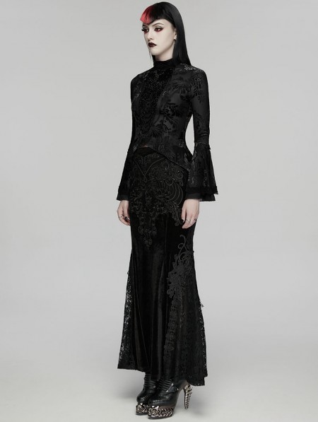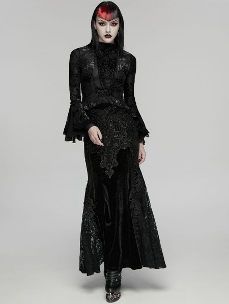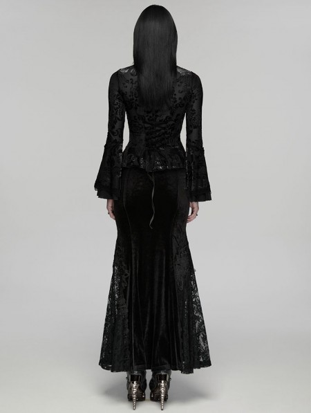 Punk Rave Black Elegant Gothic Retro Pattern Velvet Shirt for Women